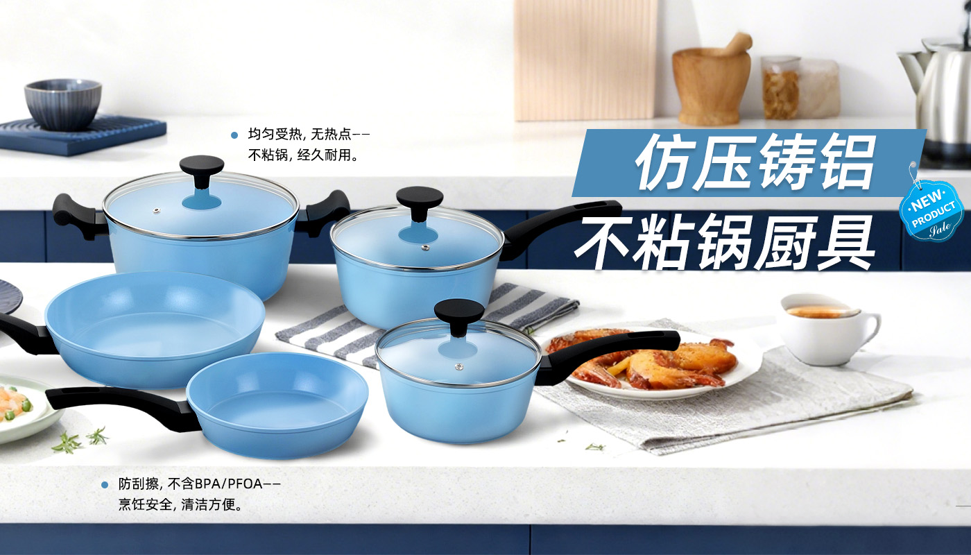 我们的仿压铸/拉伸铝厨具将先进技术与实用设计精心搭配: